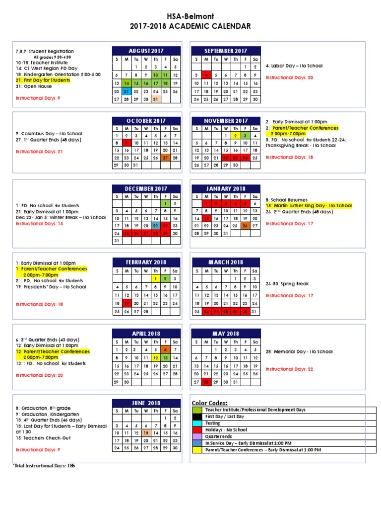 20172018 HsaBelmont Calendar August Updated PDF Traditions Sharing