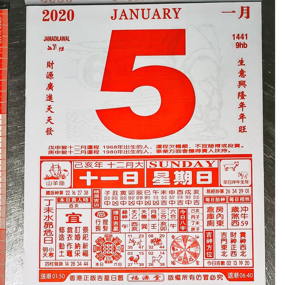 2020 LUNAR CHINESE CNY CALENDAR 365 DAY Traditional Hong Kong Singapore