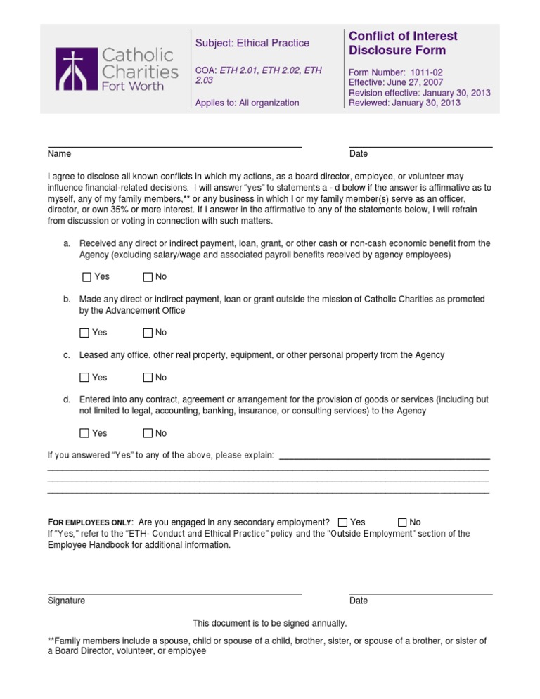 Conflict of Interest Disclosure Form Catholic Charities Fort Worth