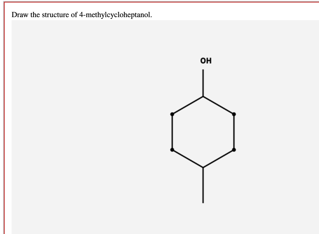 Here’s the best way to solve it. Web draw the structure of 4‑methylcycloheptanol. Start with a heptane chain, which has seven carbon atoms in a row. Start with a cycloheptane ring, which has seven carbons in a ring. Draw the molecular structure for each of the following.
