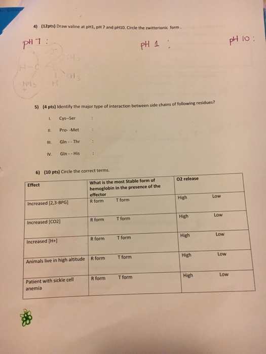 Solved Draw Valine At PH1, PH 7 And PH10. Circle The Zwit...