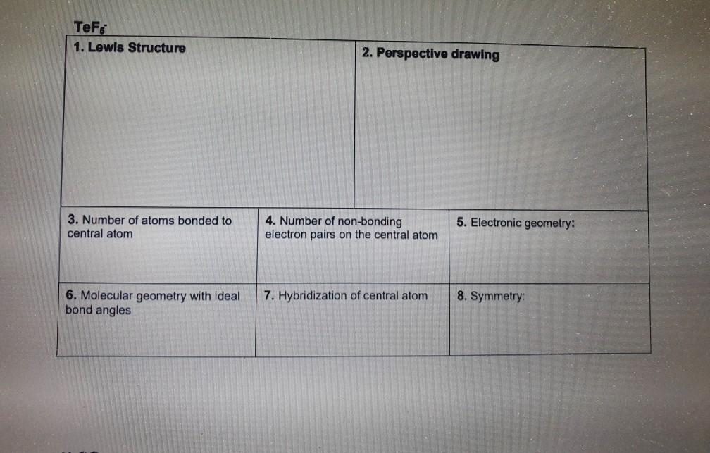 Calculate the total number of valence electrons. Chemical engineering questions and answers. Molecular geometry with ideal bond angles 7. Average rating 3.4 / 5. Electronic geometry atom central atom on central atom 7.