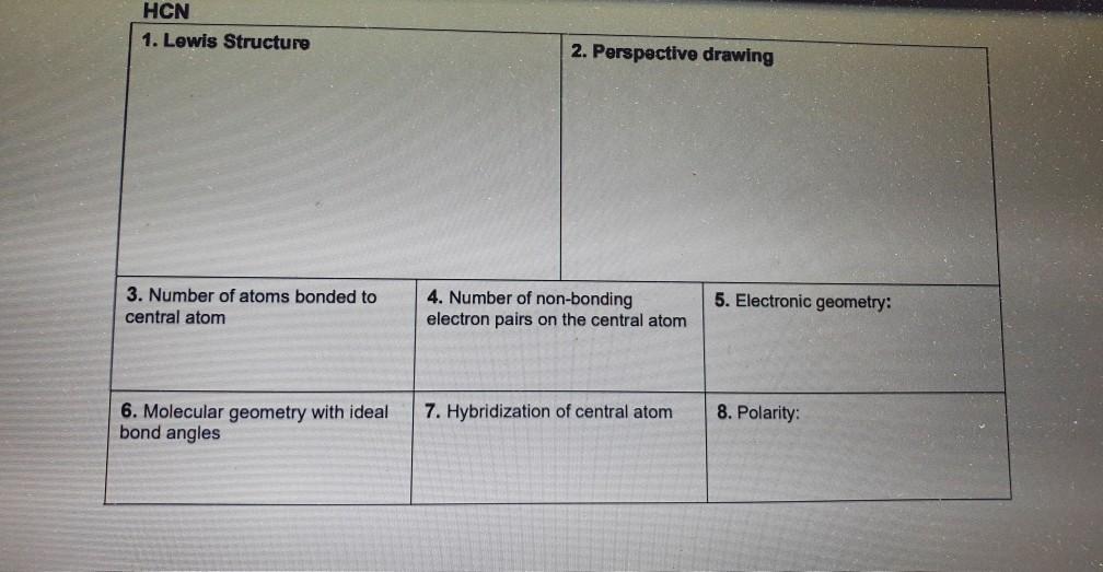 Solved HCN 1. Lewis Structure 2. Perspective drawing 3.