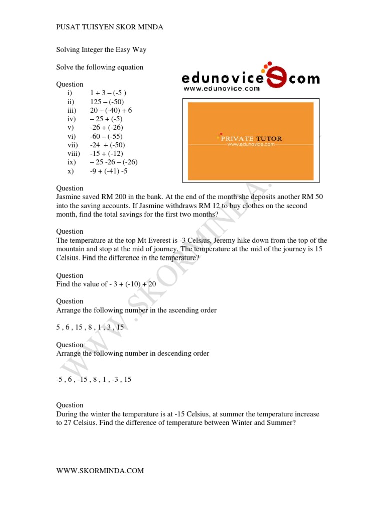 Integer Form 1 Physics & Mathematics Mathematics