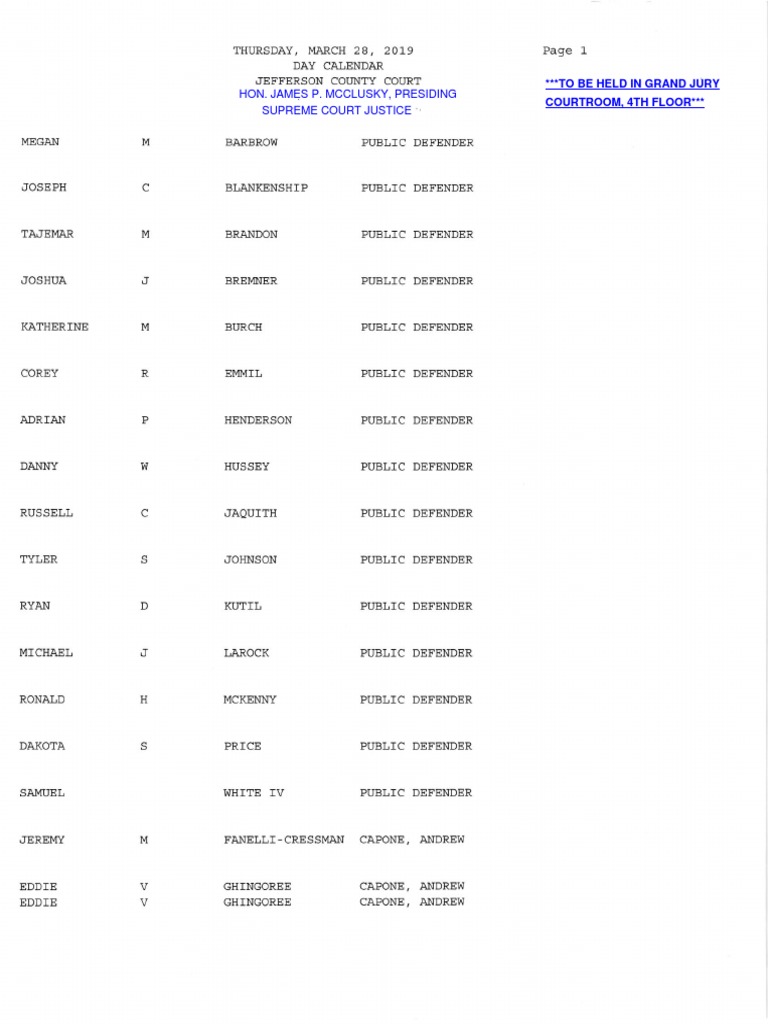 Jefferson County Court calendar March 28, 2019 Courts Judiciaries