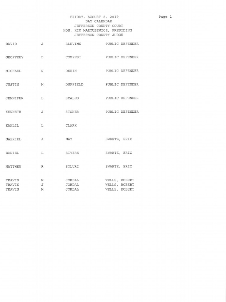 Jefferson County Court calendar Aug. 2, 2019