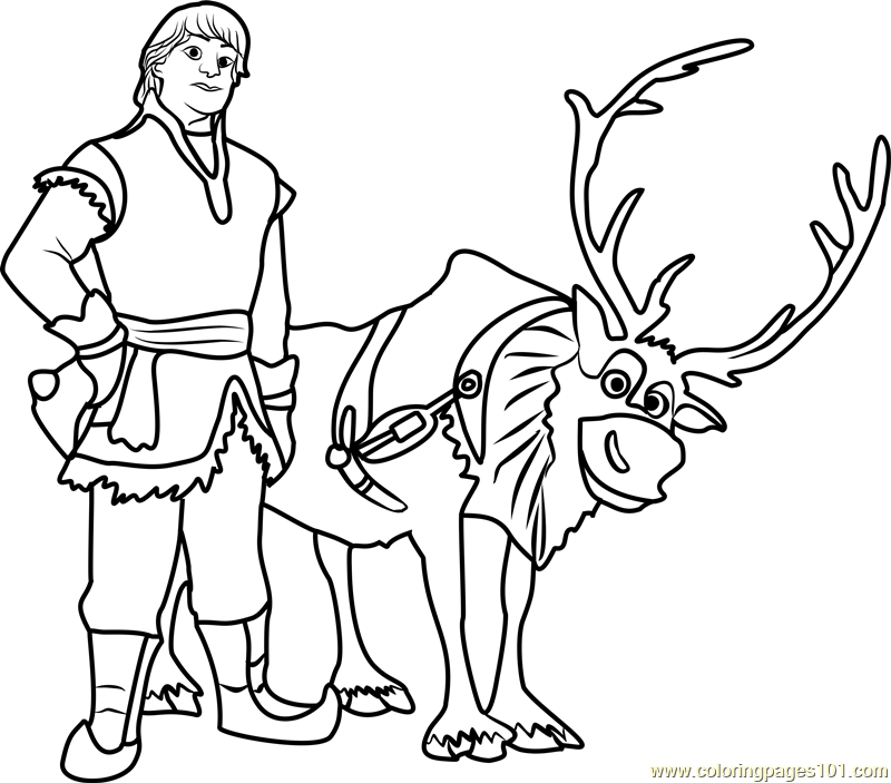 Kristoff with reindeer Coloring Page Free Frozen Coloring Pages
