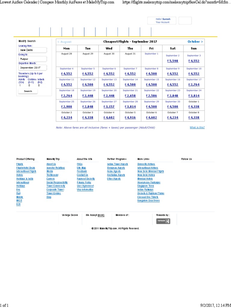 Lowest Airfare Calendar Compare Monthly AirFares at MakeMyTrip PDF