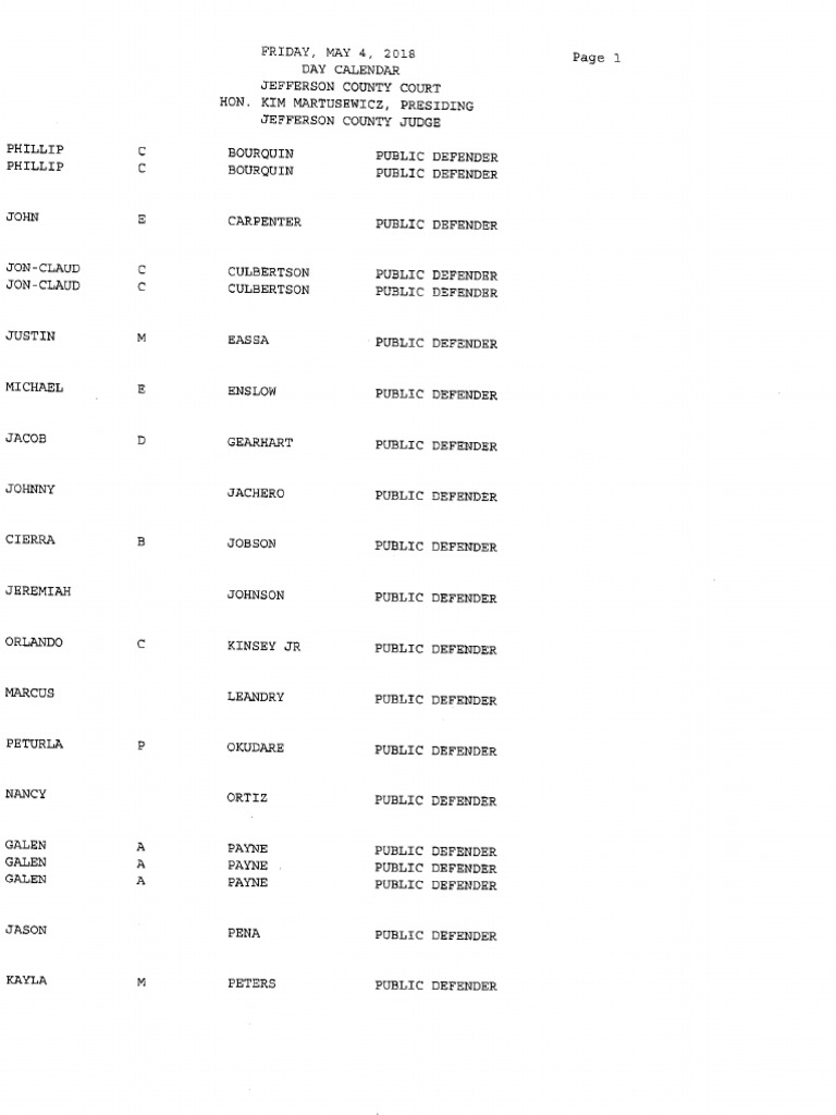 County Court calendar May 4, 2018