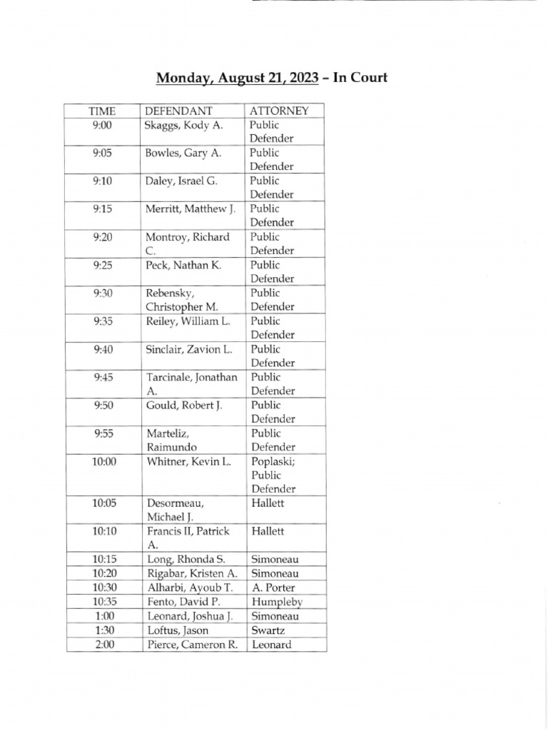 Jefferson County Court Calendar Aug. 21, 2023 PDF