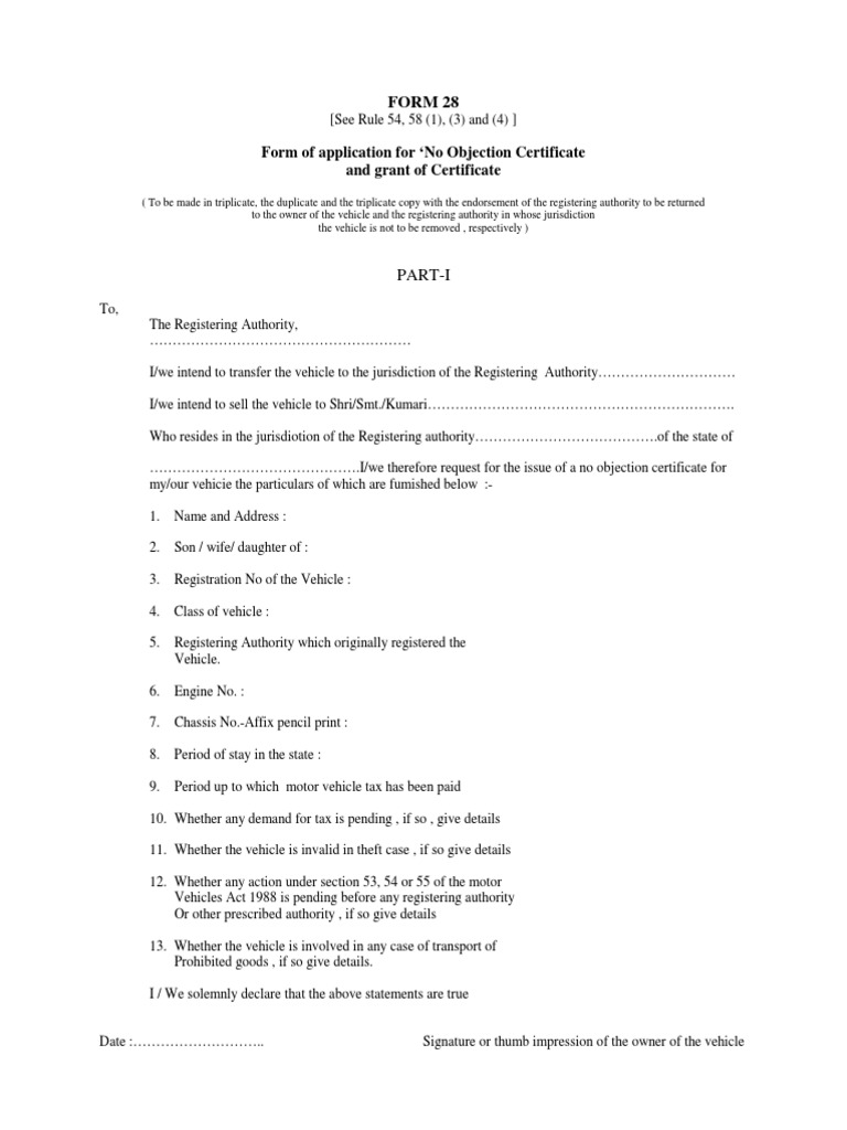 Form 28 Noc Rto Form PDF Virtue Common Law