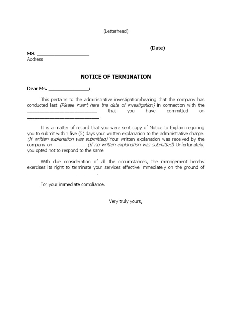 Free Printable Notice Of Termination Form (PDF & WORD)