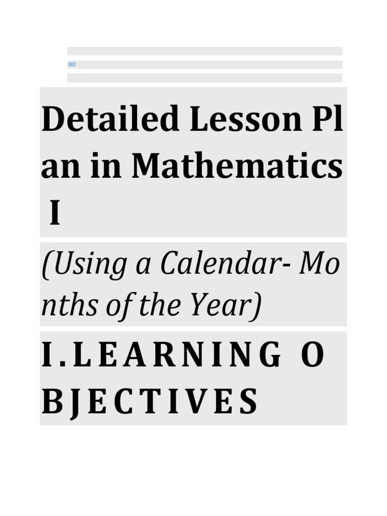 Detailed Lesson PL An in Mathematics I (Using A CalendarMo Nths of