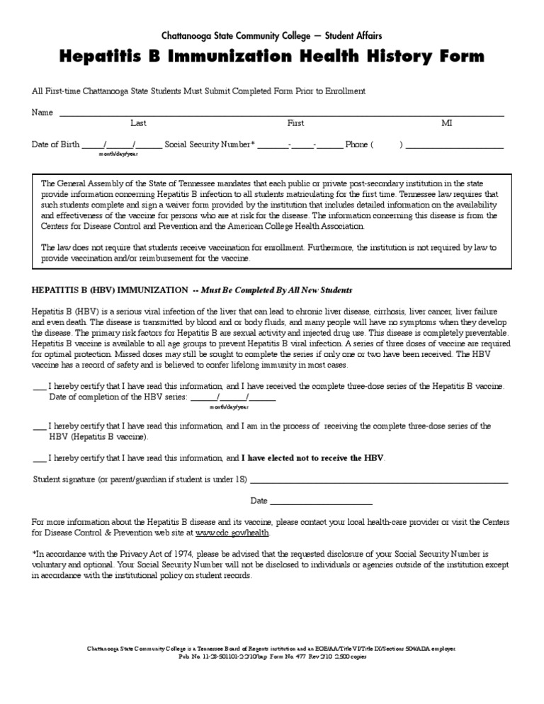 Hepatitis b Immunization Health History Form Hepatitis B Hepatitis