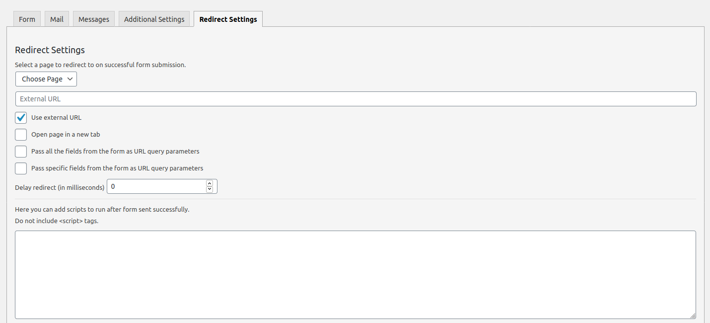 To redirect users to the thank you page after form submission: It is flexible and can easily help you create anything from simple forms to complex form structures. You can easily add conditional logic redirect to all other actions/extensions. Web using contact form 7 to mailchimp integration. Web simply go to your form settings, choose the “redirect settings” tab and.