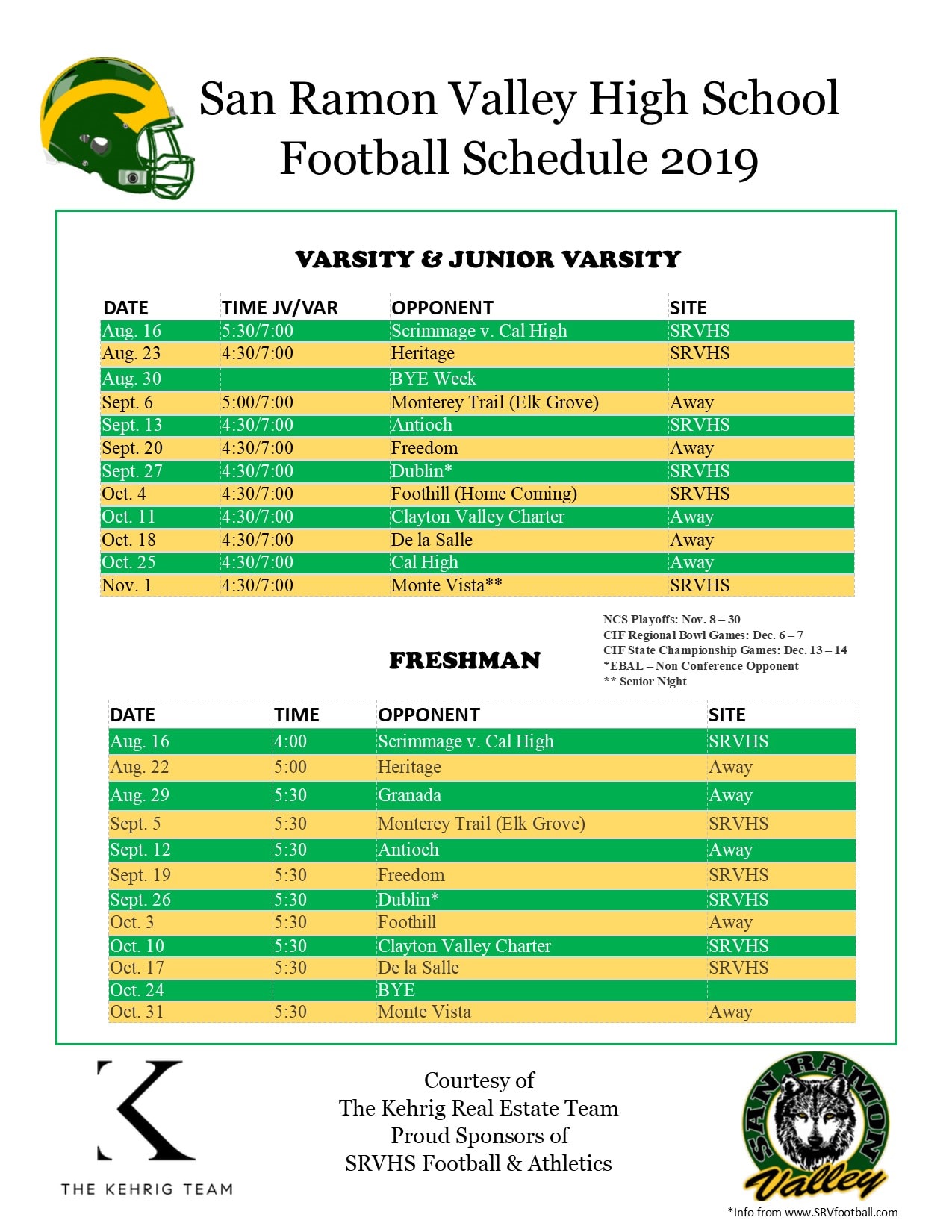 San Ramon Valley High School 2019 Football Schedule The Kehrig Team