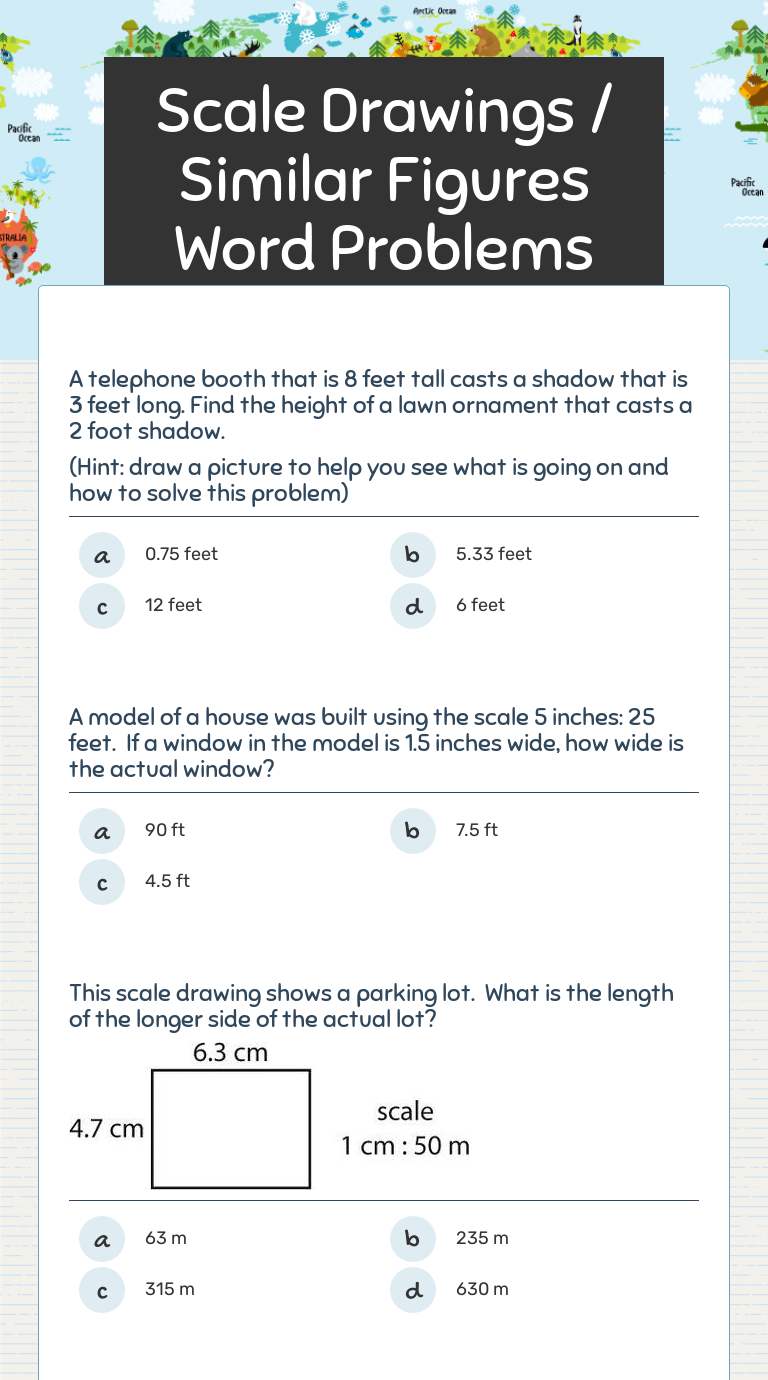 Scale Drawings / Similar Figures Word Problems Interactive Worksheet