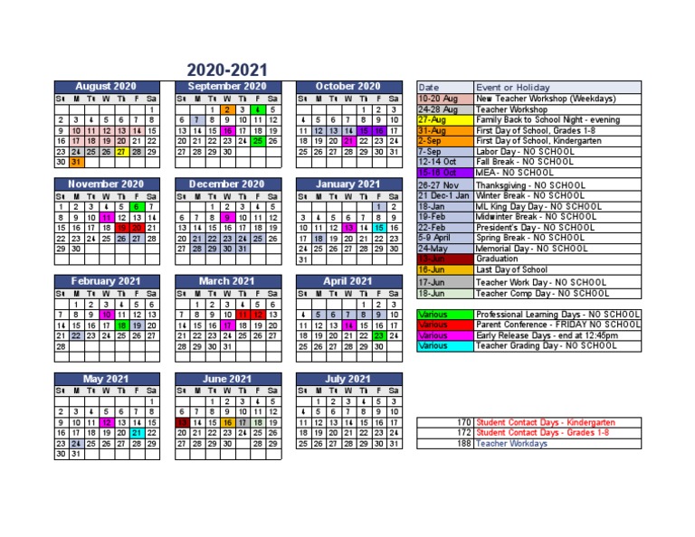 Tcgis 20202021 School Calendar Approved 2 27 20 Year PDF