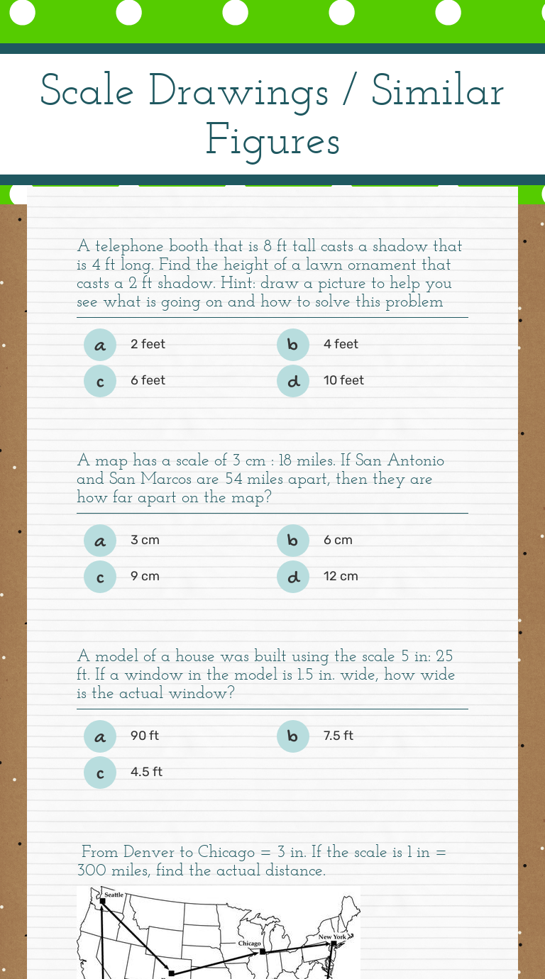 Work out the real distance between the two points. Web with this scale lengths worksheet students will reinforce their skill of measuring distances from scale drawings and then rounding them to the nearest centimeter or half a centimeter. We can use ratios and proportions to enlarge and shrink figures and to make copies. If two cities are \(5\) apart on.