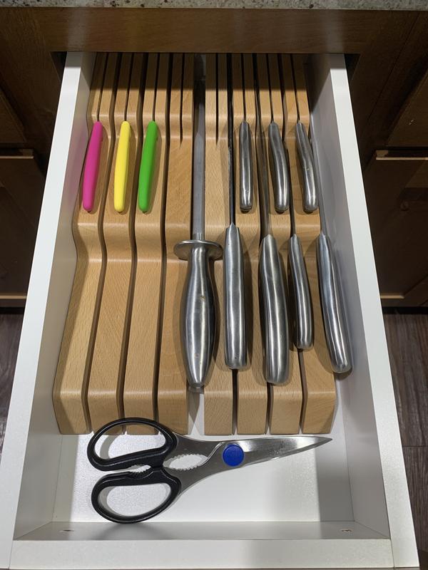 This beech drawer insert offers space for up to 15 knives (7 larger knives of up to 23 cm and 8 smaller knives). Shop trays, blocks and more! Free delivery wed, jan 31. The slots hold the knives firmly in position, preventing wear or damage caused by jarring or bumping. Wüsthof knives are worth protecting: