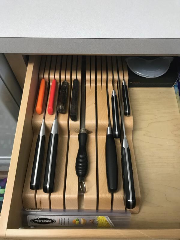 This beech drawer insert offers space for up to 15 knives (7 larger knives of up to 23 cm and 8 smaller knives). Available at a lower price from other sellers that may not offer free prime shipping. Our production methods are continually optimized to increase our energy efficiency and use of raw materials, as well as limit wastewater contamination..